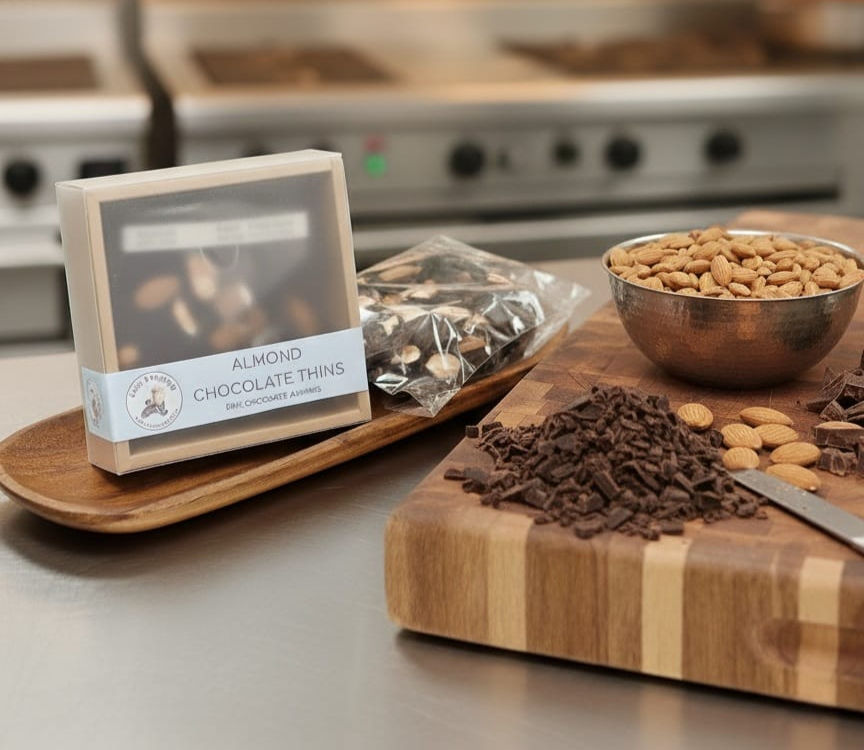 The all-time favorite Chocolate Thins now come in an all-new Little Cottage gift box. Decadent as ever, a touch more delightful Premium Dark Chocolate thin sheets loaded with crunchy bits of Almonds.